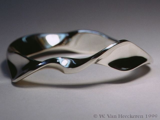 Title: Bracelet. General: This is a Forged Sterling Silver bracelet. Material: Sterling Silver. Gem: Method: Forged. Finish: Polished. Mechanics: Forged from 6.4 mm Square Bar. Designer: W.van Heeckeren. Craftsman: W.van Heeckeren. Price: AUS $ 550.00.