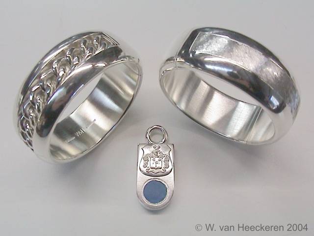 General: This is a pair of Sterling Silver Bondage bracelets,